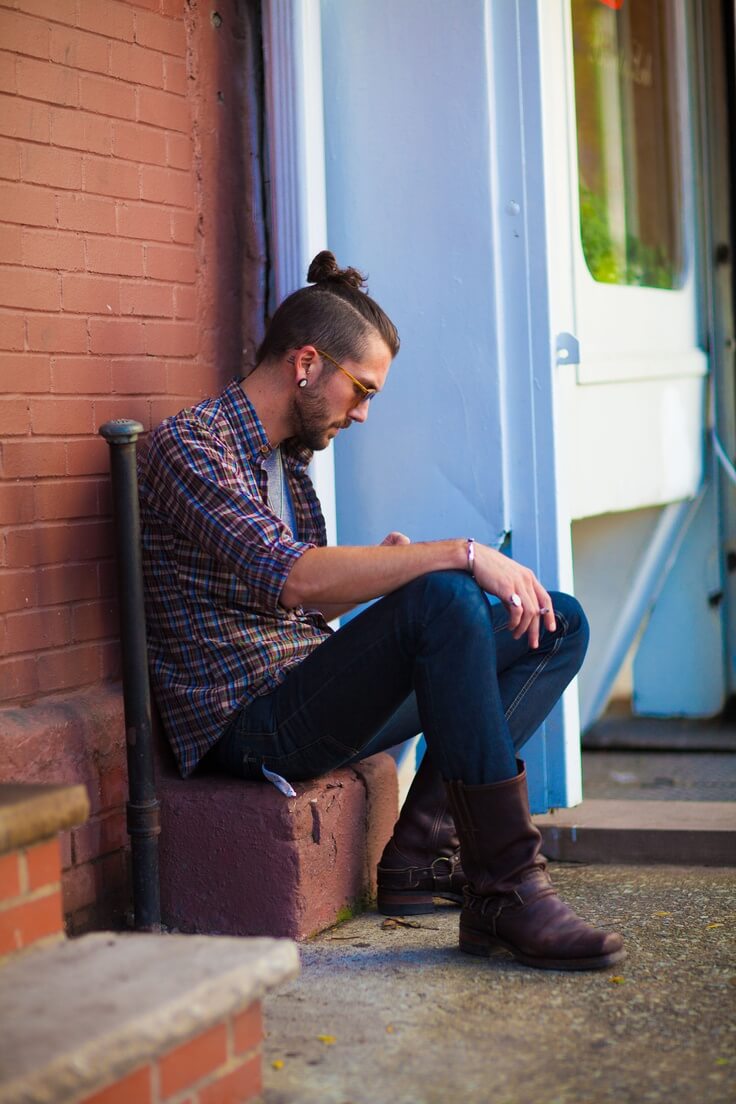 這種髮型有點像日本武士頭~就是將頂部長髮的部分扎起來,像丸子一樣!