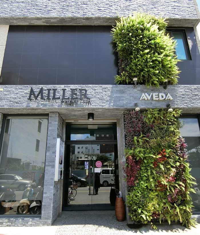以大片綠意盎然的植栽牆迎賓的米勒髮型SPA