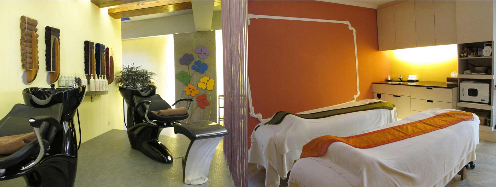 (左) 二樓頭皮SPA專屬區域、(右)二樓身體SPA專屬美容室