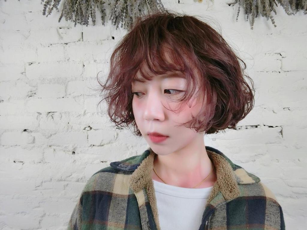 短髮的變化造型何其多,蓬鬆的短卷髮,讓莓果色也可以展現女孩個性的一面,甜而不膩,日雜風get!