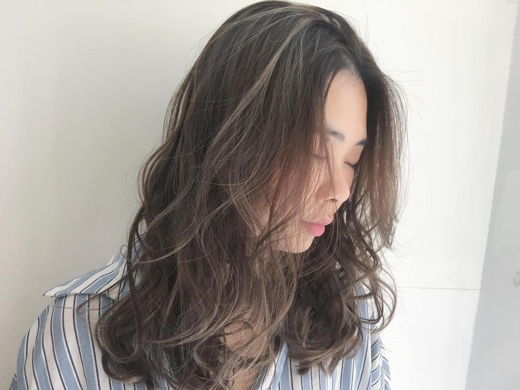 浪漫長卷髮與部分棕灰色調的混搭,讓髮型除了日系外卻又增添一些歐美感!