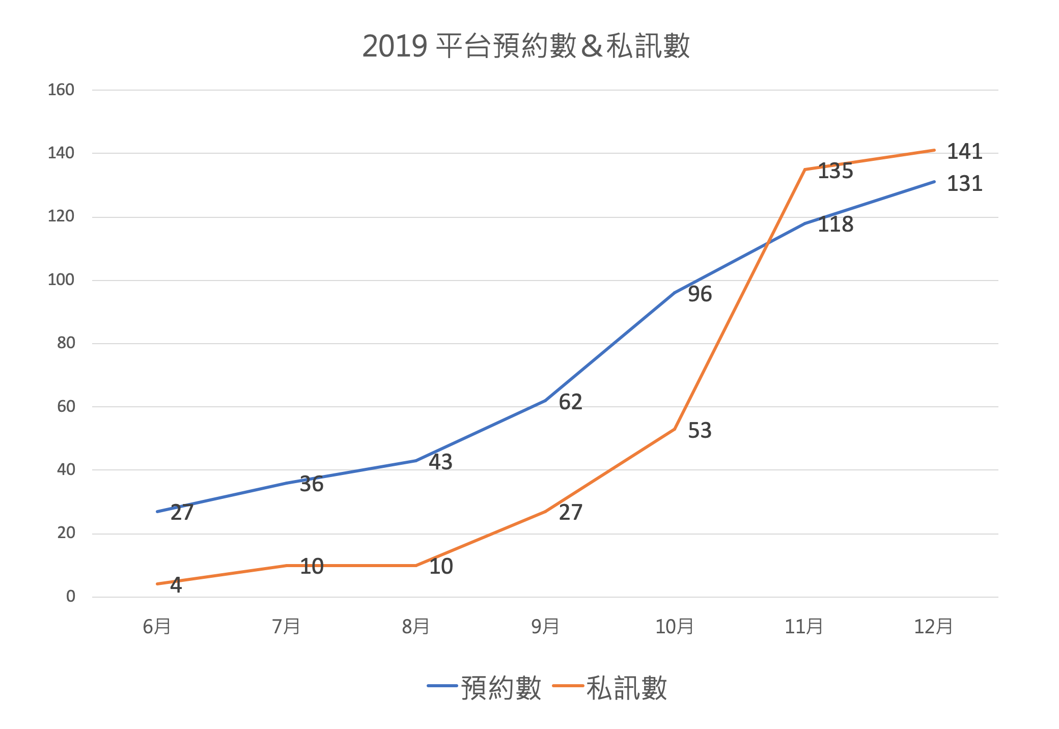 在新客數量上也獲得了亮眼的成績,自2019年6月至12月共獲得131位新客預約,每月平均新客數18位以上、平均顧客私訊諮詢數也達20位,整體業績成長20%