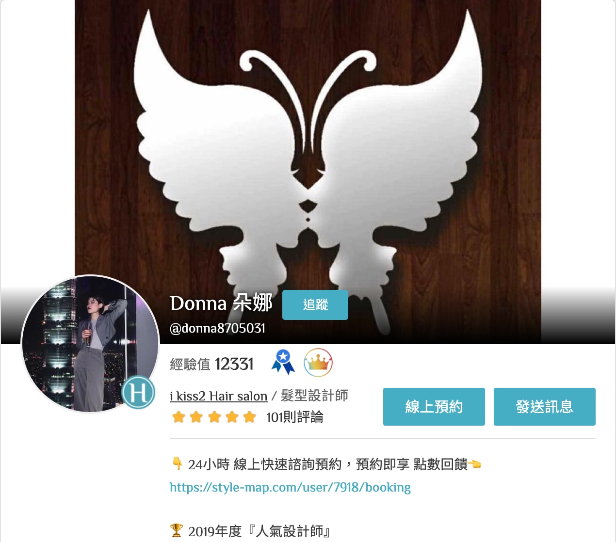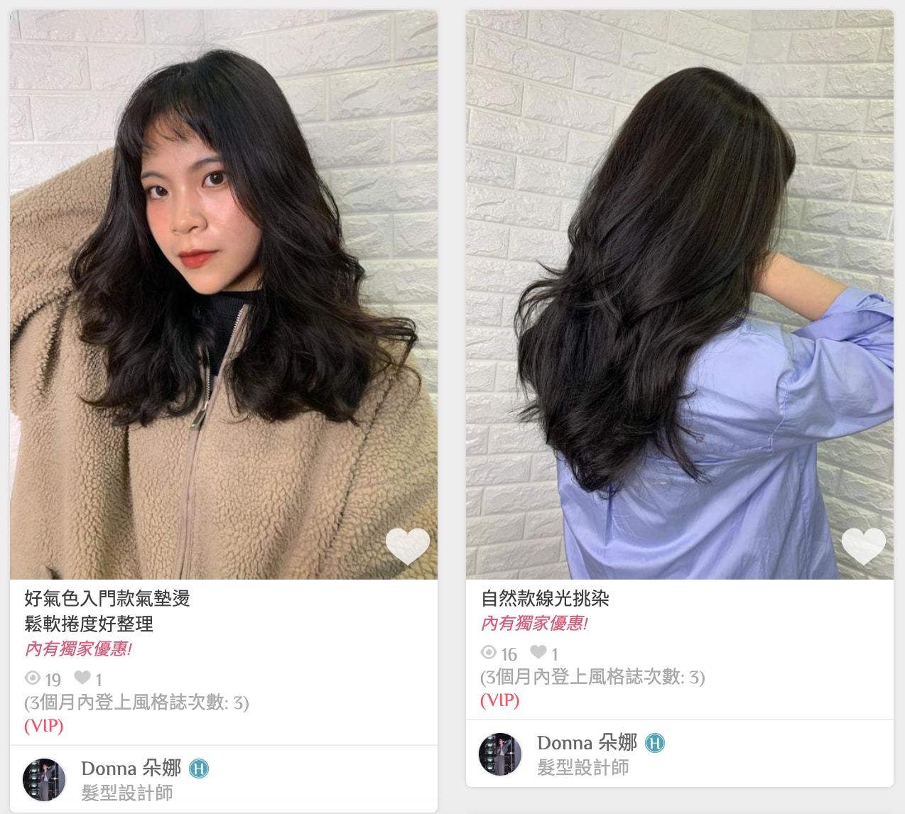 Donna在學生時期就讀美容美髮科,並已累積了三年的設計師資歷,對美髮領域擁有相當專業的技術與知識,但對於網路行銷仍不太熟悉。初期和大家一樣嘗試在IG、FB等各平台宣傳曝光,大約同時也在三年前在搜尋髮型相關資訊時,認識StyleMap美配並加入開始經營作品集。