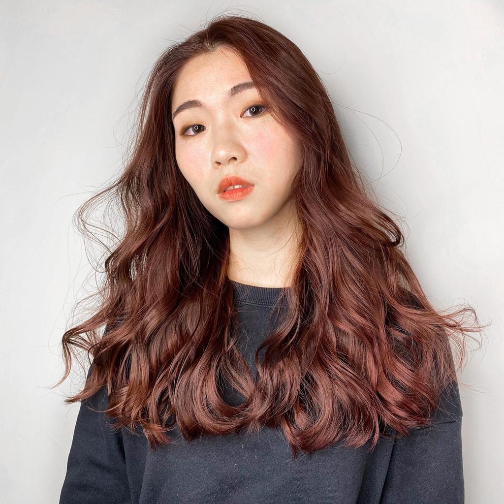 在韓國也是燒到不行的荔枝棕髮色,染完非常顯白,不需要漂、就很容易顯色,在光下則呈現紫紅色澤,既浪漫又有女人味,難怪大家都說它是讓人心動的招桃花髮色