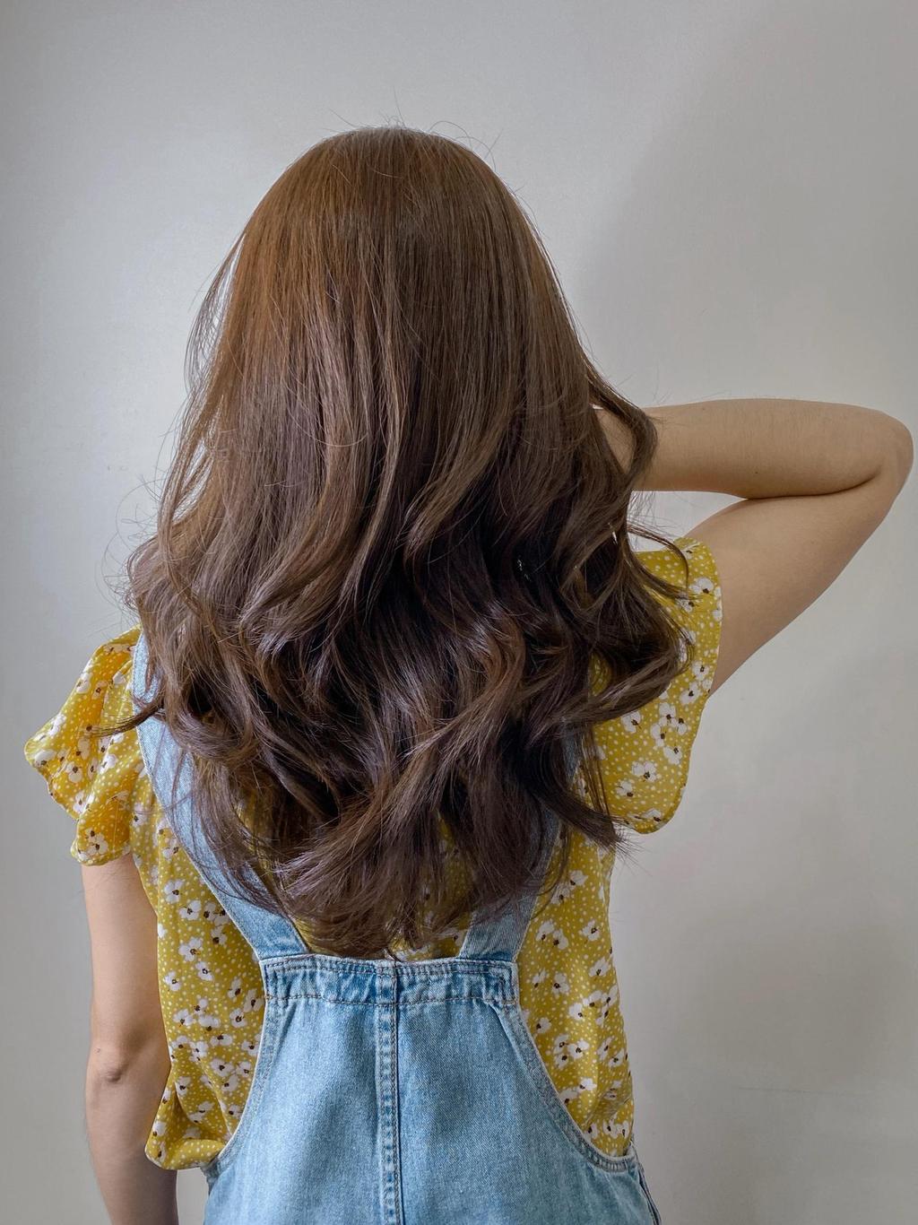女神韓系魚尾質感燙配上奶茶冷霧棕色,燙大卷增加整體蓬鬆線條感~隨性手撥好整理~整體的美感設計跟捲度搭配也是很重要的